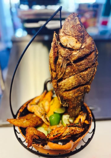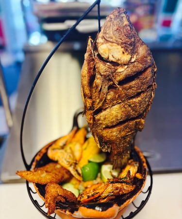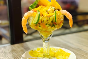 Comes with a rib steak, pork rib whole corn, shrimp and pico de gallo