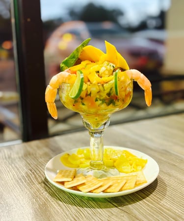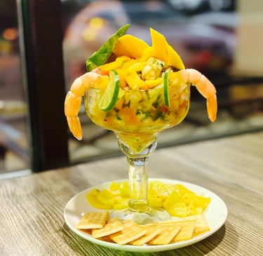 Filled with rice, beans, cheese, and choice of meat, guacamole, cream, pico de gallo, and lettuce (Extra charge for shrimp)