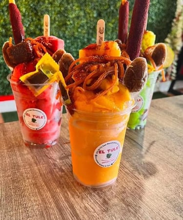 Candy tortillas, filled with Mixed fruit, Squinkle, tajin, and chamoy